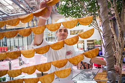 “For more high-end corporate events, we can have chef or attendant-managed food stations to give it a more upscale feel,” Maureen says. These stations double as entertainment, giving guests a chance to interact and explore.